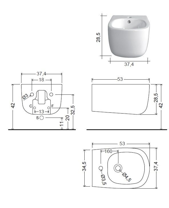 Биде подвесное Nic Design Ovvio 37,4х53х28,5 см, Denim глянец (004434076) - органические и компактные формы.