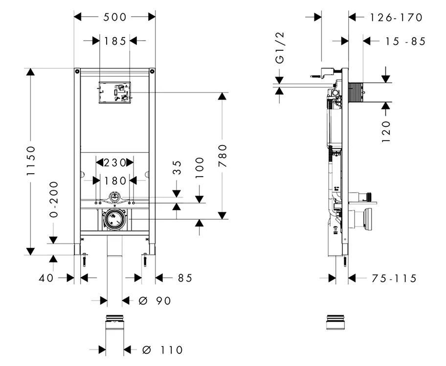 Инсталляция Hansgrohe iFrame Universal 1120 для подвесного унитаза (01022180) - отличается эффектным видом, надежностью и простотой применения.