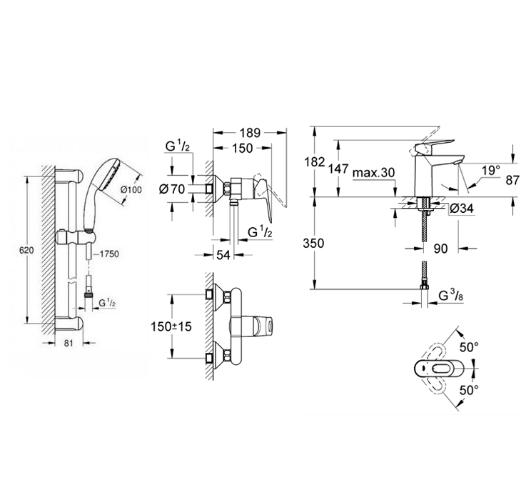 Особенности набора смесителей Grohe Bauloop S 3 в 1 для душа (123220SA)