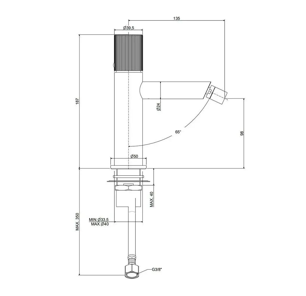 - длина излива: 135 мм