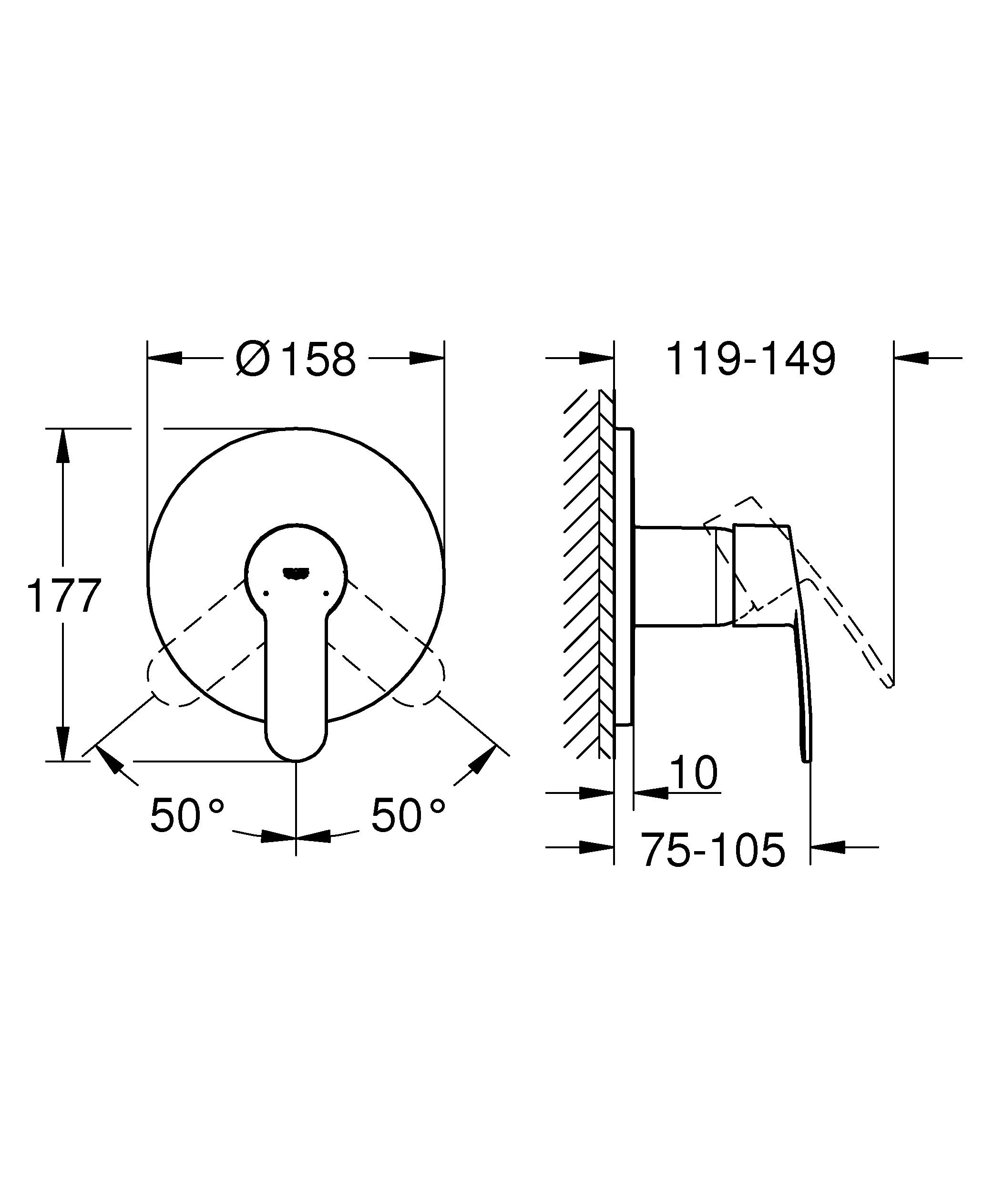 - с настенными розетками Grohe QuickFix (скрытые эксцентрики, уплотнение, быстрый скрытый монтаж)