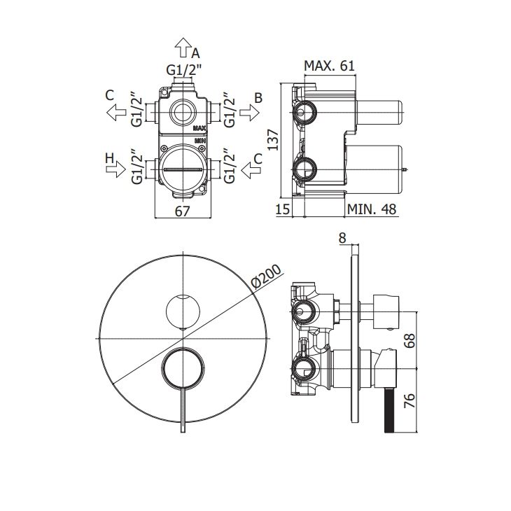 Особенности смесителя для душа Paffoni FOX встроенного, на 3 выхода (FOX019CR)