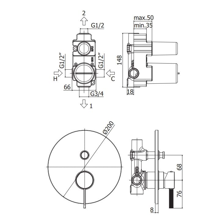 - соединения 1/2”G для горячей/холодной воды и верхнее соединение