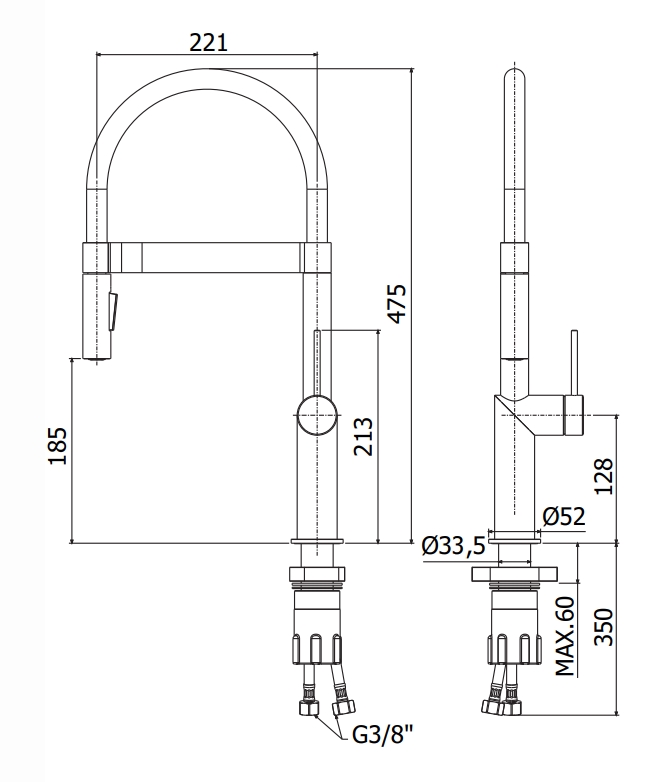 - комплект из 2 шлангов из нержавеющей стали 3/8"G