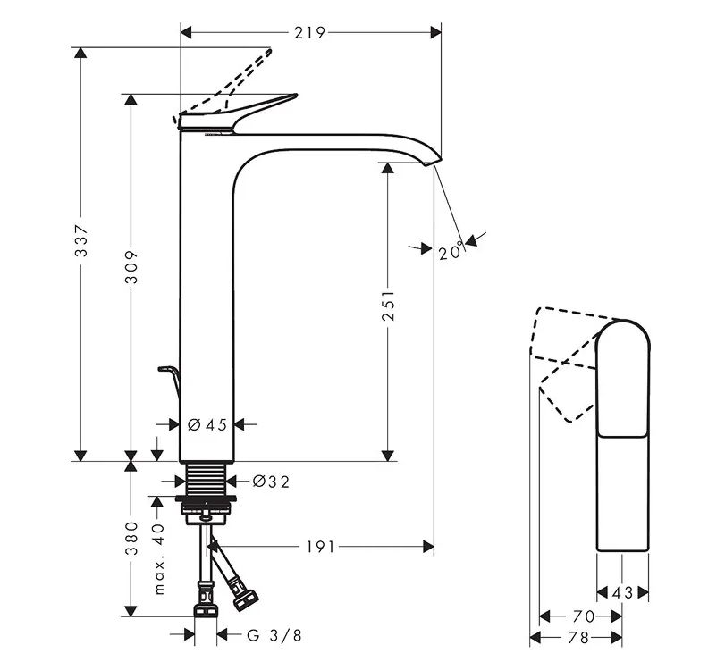 Особенности смесителя для умывальника Hansgrohe Vivenis 250 CoolStart без д/к pop-up (75045140)