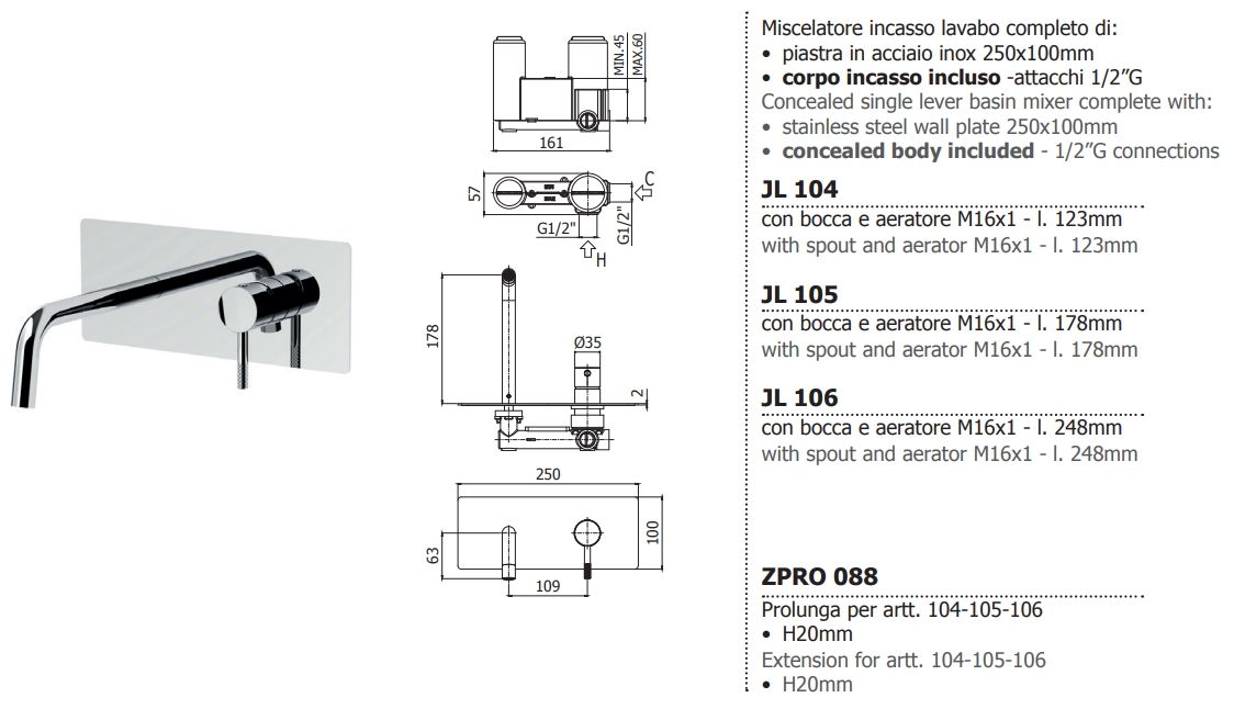 Особенности смесителя для умывальника Paffoni Jolly с изливом 123 мм (JL104NO)