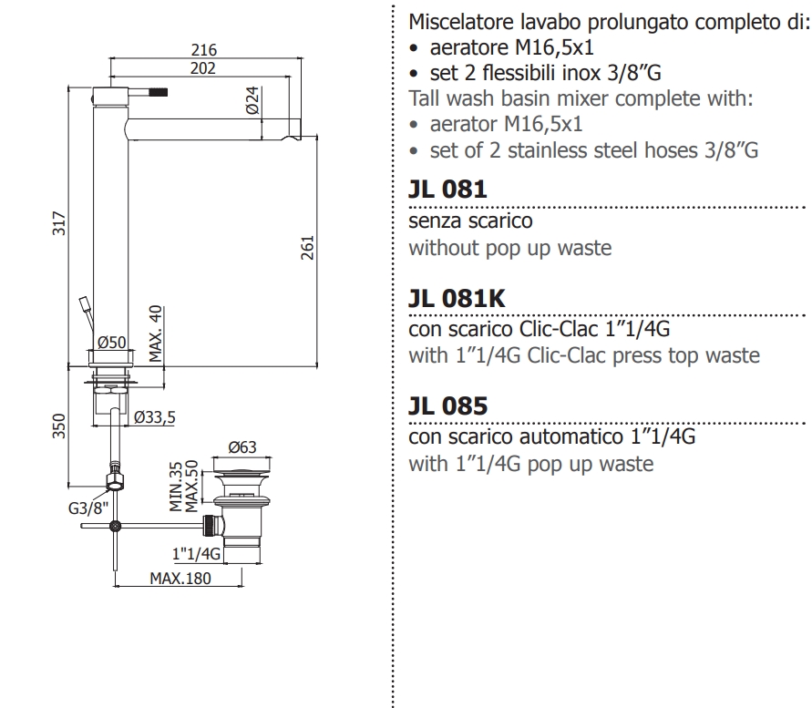 Особенности смесителя для умывальника Paffoni Jolly, Clic-Clac 1”1/4G (JL081KCR)