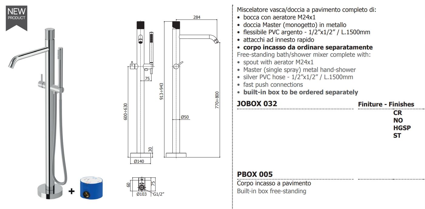 Особенности напольного смесителя для ванны/душа Paffoni JO (JOBOX032CR)