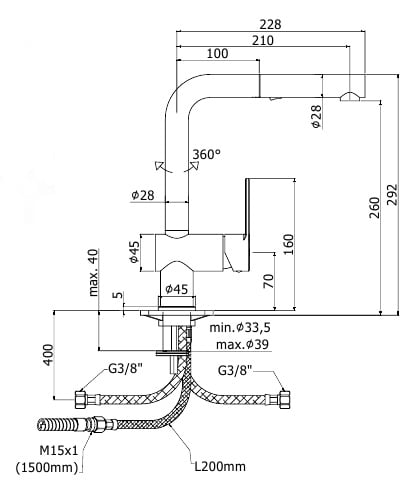- высота до излива 254 мм