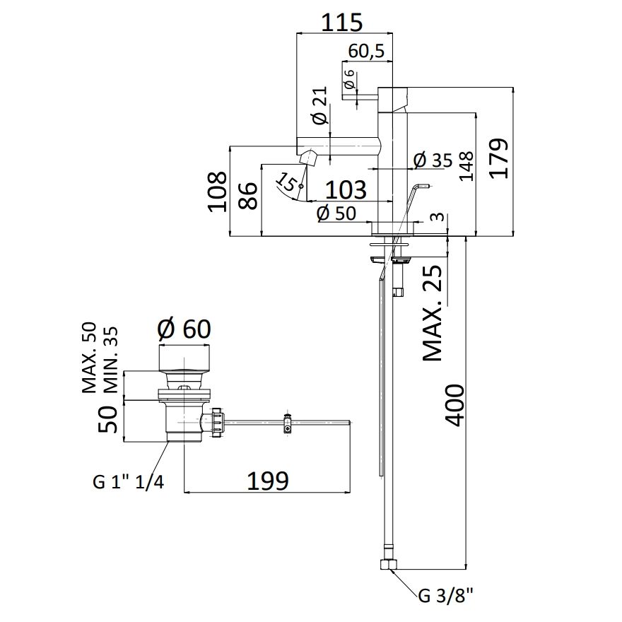 Смеситель для умывальника Mariani Ultraminimal с донным клапаном, хром (393UM) - высококачественный продукт с давними традициями и большой элегантностью.
