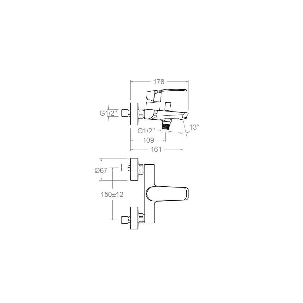 - Расход при 3 бар: 20 л/мин на выходе из ванны и 12 л/мин на выходе душ.
