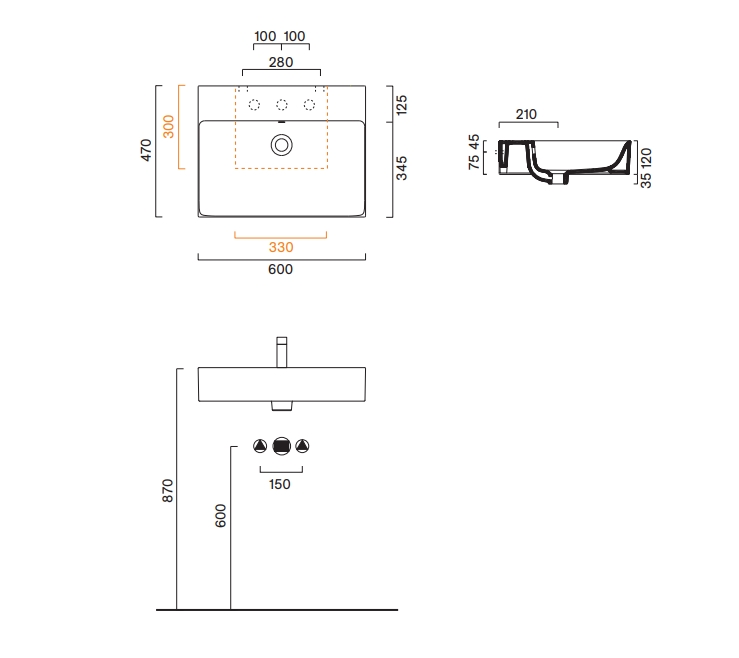 - без отверстия под смеситель