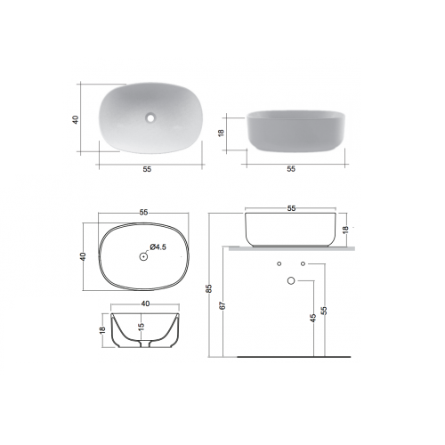 Умывальник на столешницу Nic Design Semplice 55х40х15 см, Cipria матовый (001376060) - органические и компактные формы.