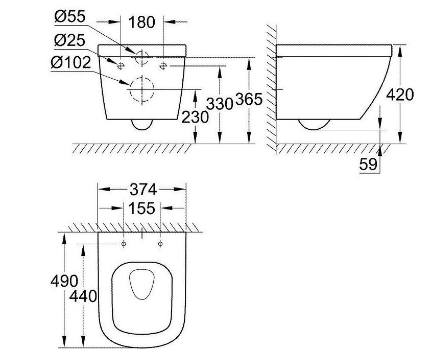 - GROHE TripleVortex® система смыва задействует три выпускных отверстия, создавая мощный смыв
