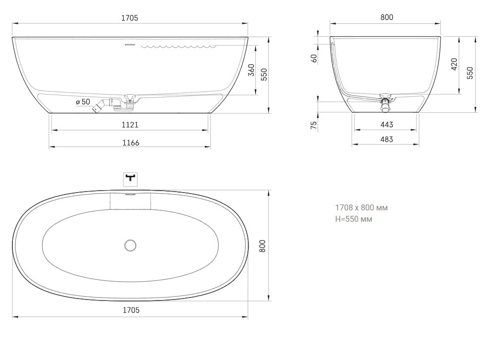 Ванна из искусственного камня PAA Bella, отдельностоящая, 170,5x80, Graphite (VABELS_01) – удачное сочетания художественной ценности, эргономичности и функциональности.