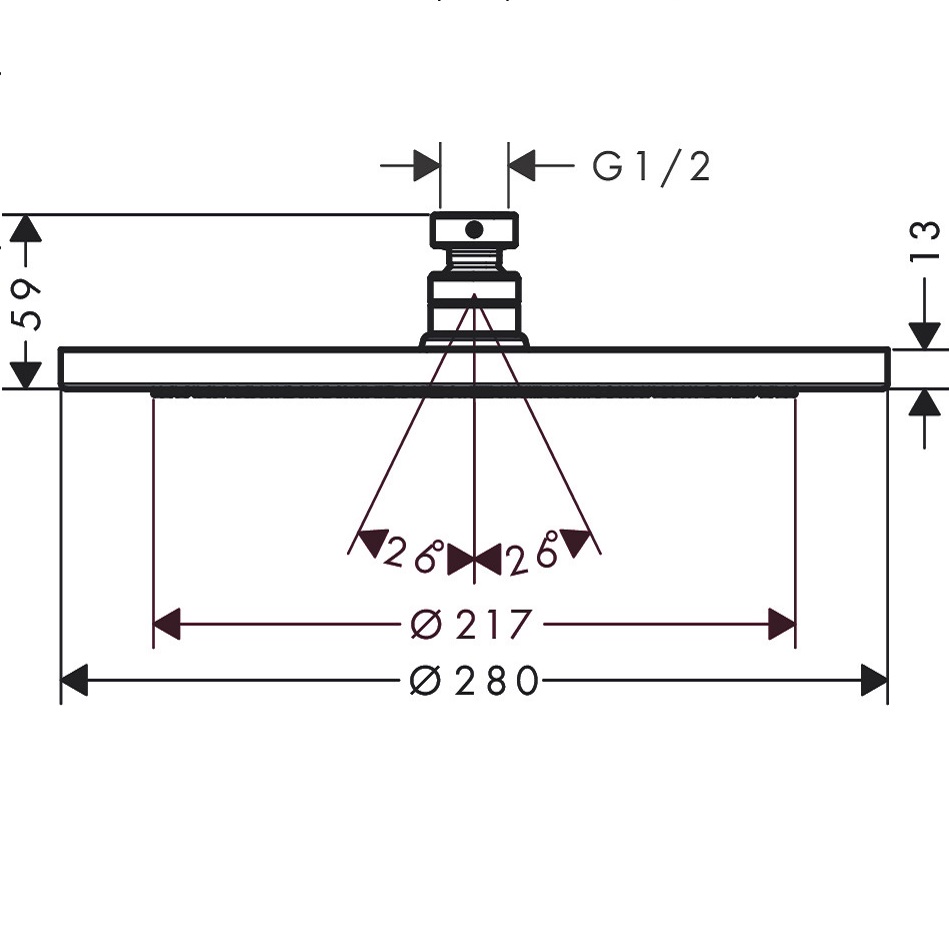 Верхний душ Hansgrohe Croma 280 1jet, matt black (26220670) - отличается эффектным видом, функциональностью и простотой применения, а материалы высокого качества, из которых он выполнен, гарантируют надежную работу в течение многих лет.