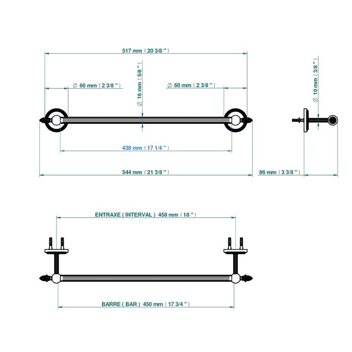 - вішалка для рушників одинарна, фіксована, довжина: 450 мм