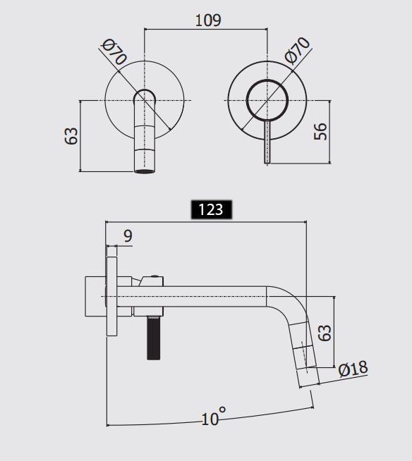 - винос виливу: 123 мм