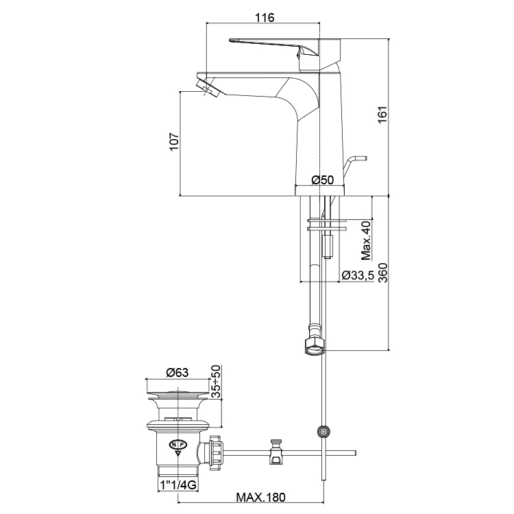 Особливості змішувача для умивальника Paffoni Orange, з д/к 1 1/4 (OG075CR)