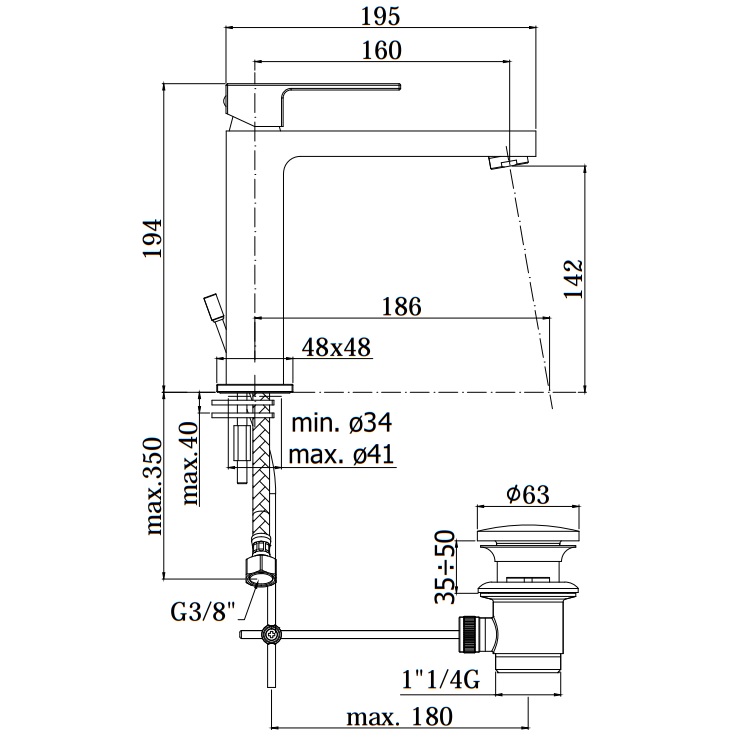 - змішувач доступний без донного клапана і з натискним донним клапаном Clic-Clac