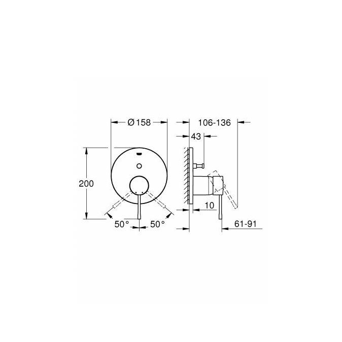 - комплект верхньої монтажної частини для GROHE Rapido SmartBox 35 600 000